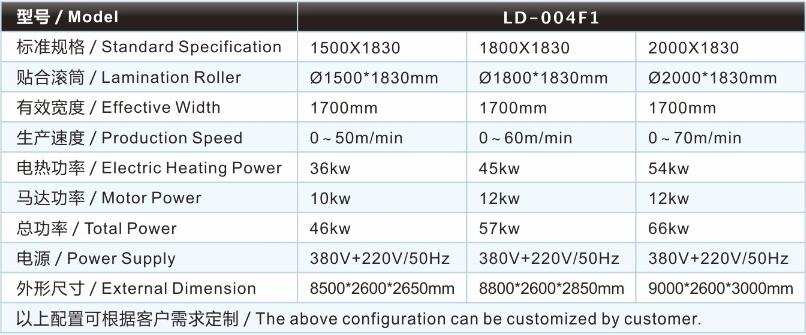| 紙品復(fù)合機/貼合機-紙品復(fù)合機/貼合機LD-004F1主要技術(shù)參數(shù) / Major technical parameters |