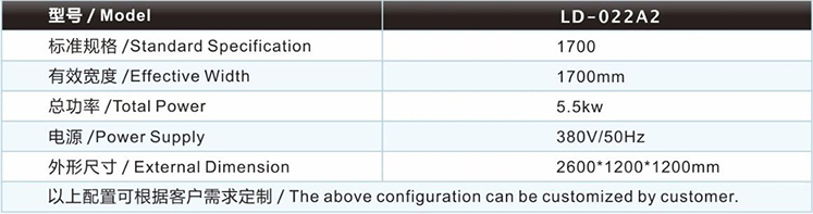| 圓刀裁條機LD-022A2主要技術(shù)參數(shù) / Major technical parameters |
