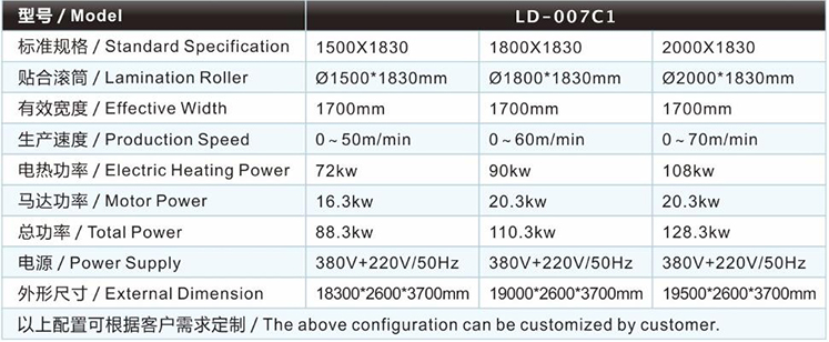 | SBR復(fù)合機(jī)/貼合機(jī)-雙輪SBR復(fù)合機(jī)/貼合機(jī)LD-007C1主要技術(shù)參數(shù) / Major technical parameters |