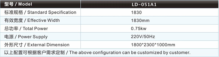 | 普通卷布機(jī)LD-051A1主要技術(shù)參數(shù) / Major technical parameters |
