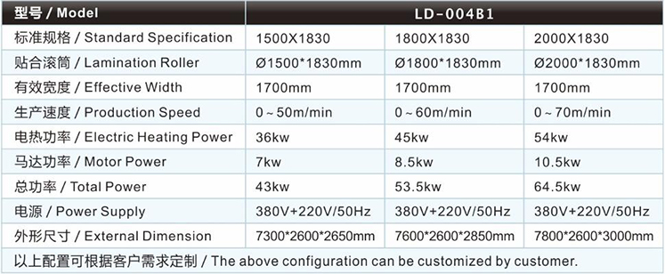 | 皮革復(fù)合機(jī)/貼合機(jī)-立式雙槽水膠網(wǎng)帶復(fù)合機(jī)/貼合機(jī)LD-004B1的主要技術(shù)參數(shù) / Major technical parameters |