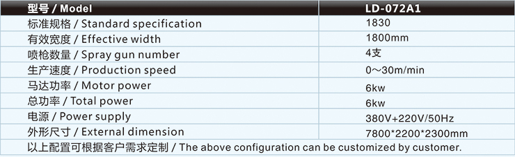 | 內(nèi)衣復(fù)合機(jī)/貼合機(jī)-噴膠式復(fù)合機(jī)/貼合機(jī)LD-072A1主要技術(shù)參數(shù) / Major technical parameters |