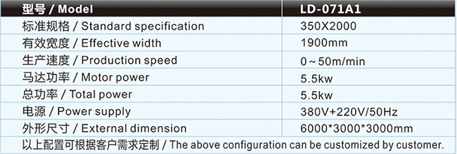 | 火焰復(fù)合機(jī)/貼合機(jī)-簡(jiǎn)單型火焰復(fù)合機(jī)/貼合機(jī)LD-071A1主要技術(shù)參數(shù) / Major technical parameters |